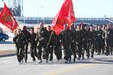 — Maj. Gen. Glenn M. Walters, right, leads a large pack of 2nd Marine Aircraft Wing runners during the 2nd MAW Marine Corps Birthday Run, Nov. 9. More than 1,000 Marines ran in the birthday run. Brig. Gen. Gary L. Thomas, center, and Sgt. Maj. Lisa Nilsson, right, ran with Walters and will be going forward as the commanding general and sergeant major