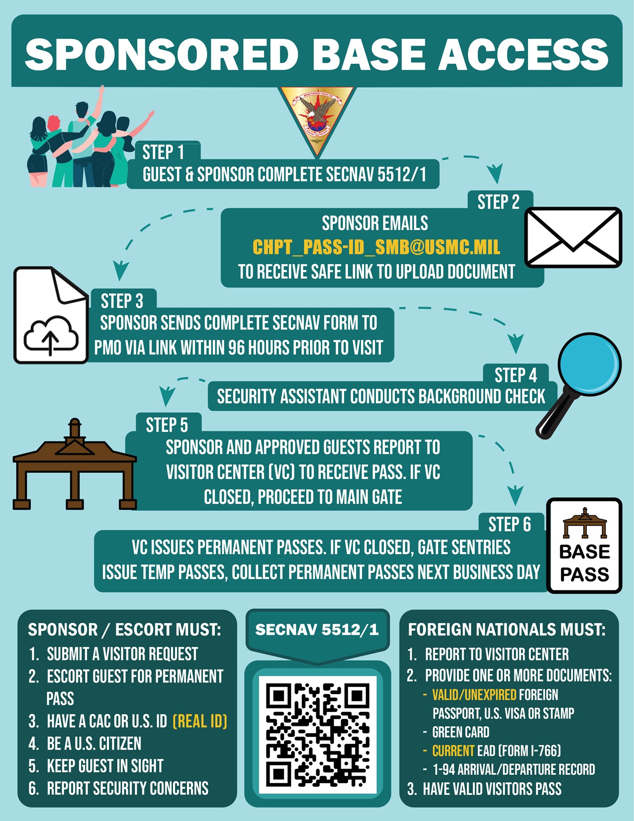Note: Beginning May 7, 2025, Marine Corps Air Station Cherry Point will enforce the REAL ID Act, which requires visitors and non-permanent party personnel to have a REAL ID compliant driver’s license or identification card to enter the installation. The requirement will largely affect visitors over the age of 18 that include delivery drivers, third-party contracted workers, and public and private guests trying to enter the installation.